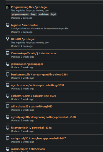 Cleared all the spam repos so you shouldnt see any more, will do a more permanent solution later (will see if I can do an application process using a third party form system since forgejo doesnt have that built in)