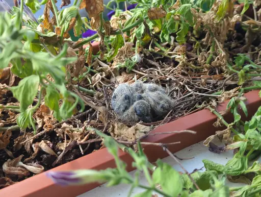 Every year there’s mourning doves that nest in our planter that hangs on the backyard deck’s railing. This morning I was able to get a couple quick pictures of the babies during the morning shift change :)